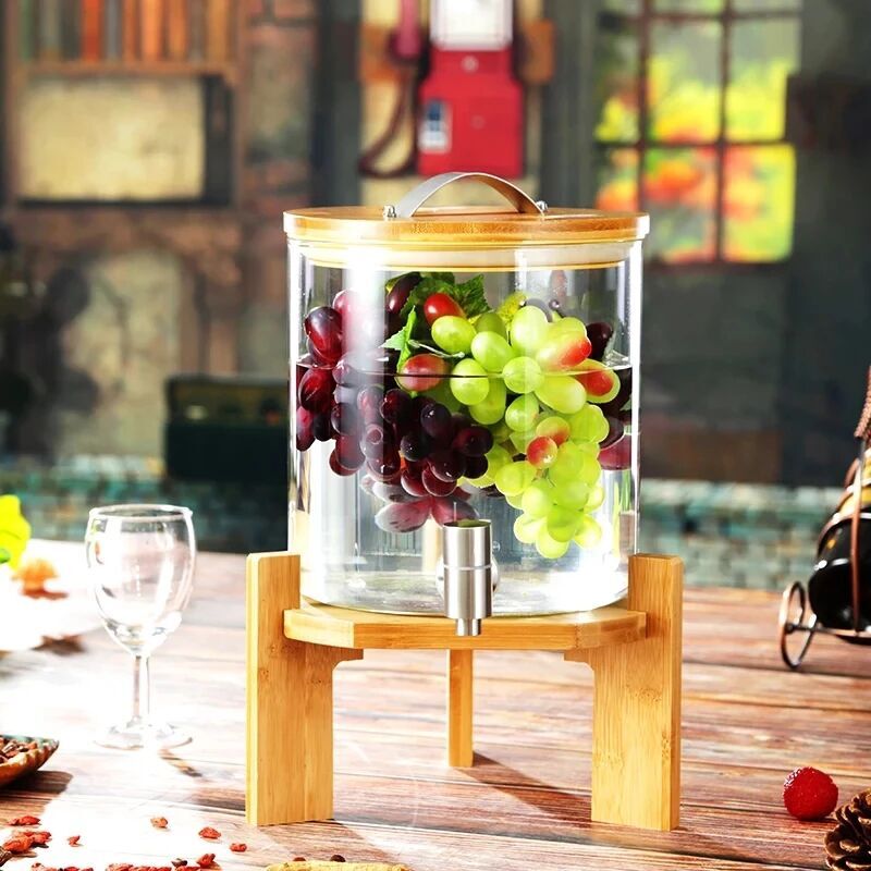 High temperature resistant glass bubble wine bottle with faucet green plum grape brewing jar Special beer cola bucket sealed can household