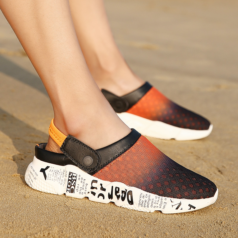 Outdoor slippers men's summer fashion wear beach hole shoes Korean version thick bottom non-slip sandals and slippers breathable large size sandals men