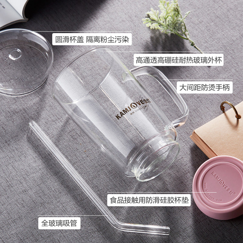 Gold Foci AC-100 Glass Cup Teacup Belt with Shake Soundnet Red Water Cup Women Ins Wind Minima Straws Water glass Home