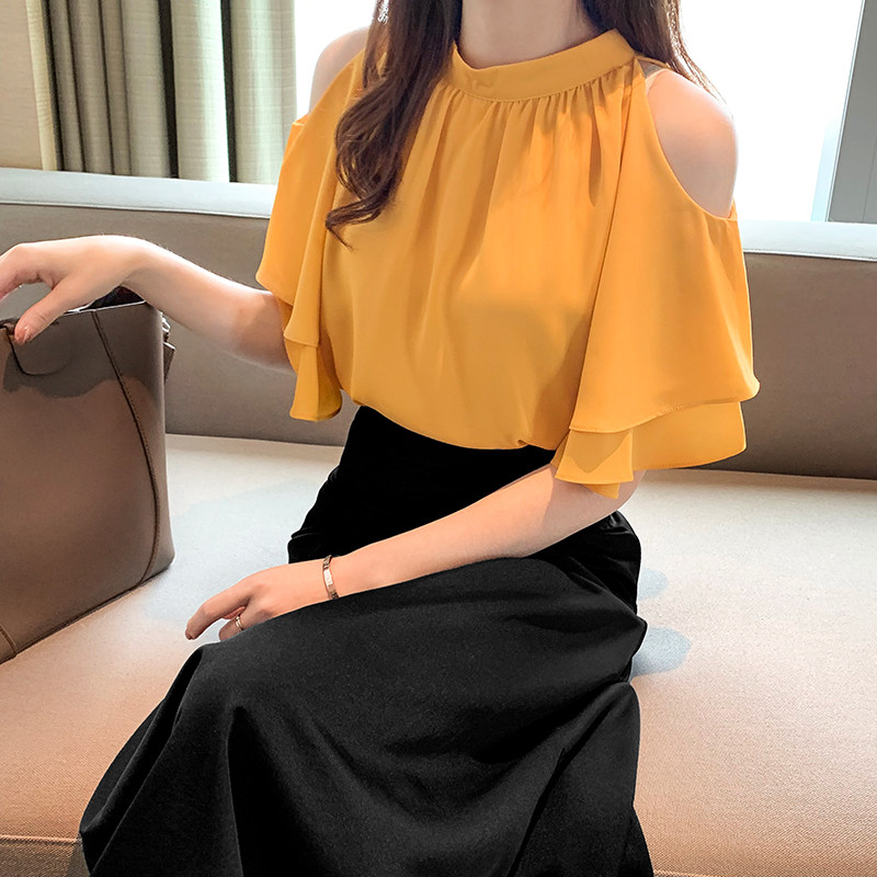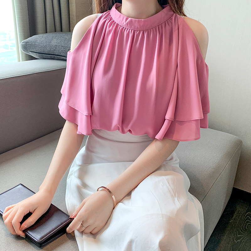 Short-sleeved chiffon shirt women's thin section 2022 summer new belly-covering chiffon top women's shirt all-match shirt small shirt