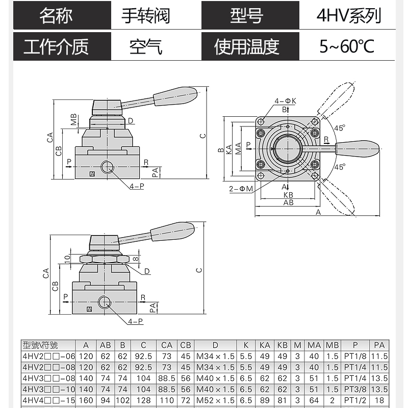 4HV210 pneumatic three-position four-way hand rotary valve 230-08 manual switch hand plate cylinder reversing valve human control valve