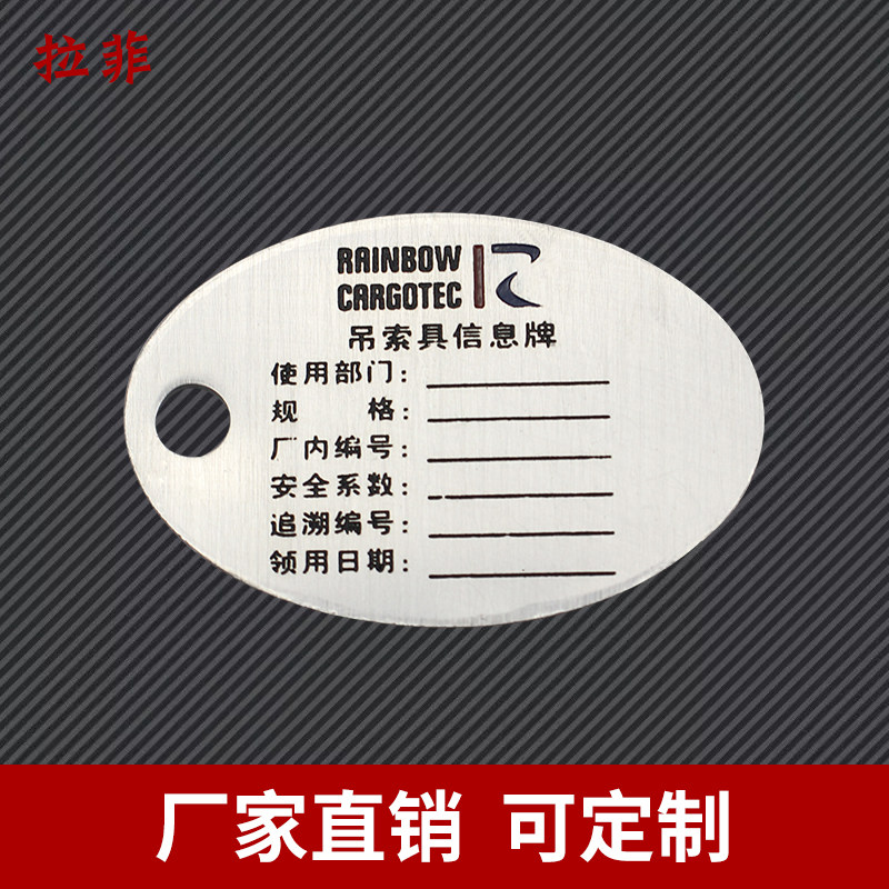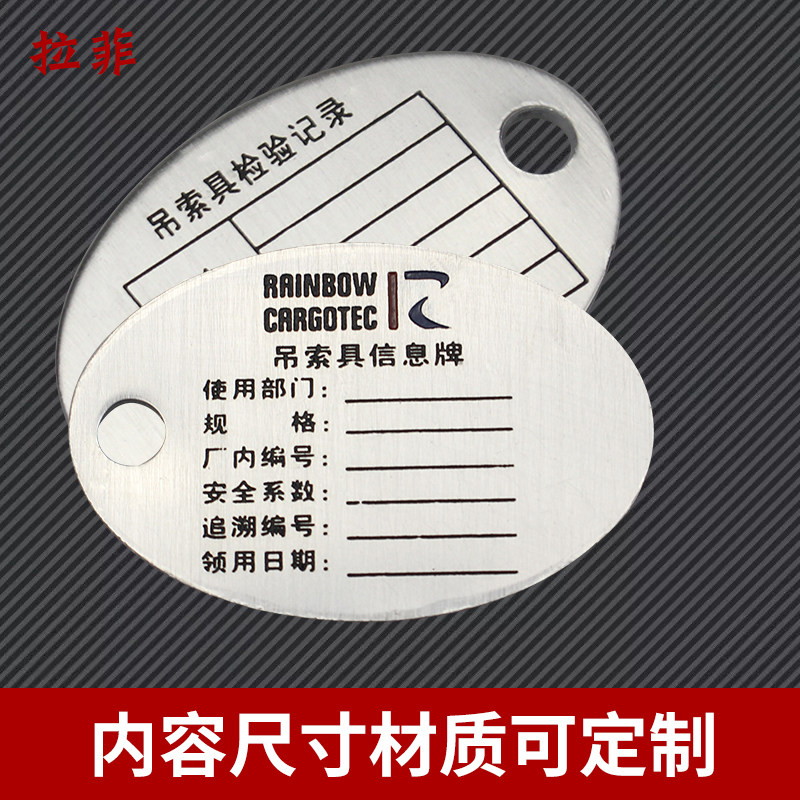 Sling information plate Stainless steel aluminum industrial machinery logo sign prompt indicator customized customized