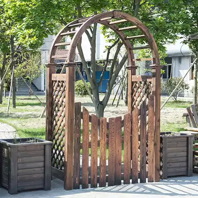Outdoor courtyard carbonized anti-corrosion solid wood arch garden door grape frame semi-circle grid arch climbing vine flower shelf