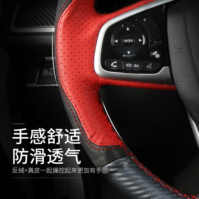 Suitable for the 10th generation Civic steering wheel cover Honda 16-20 Civic hand-sewn leather handle cover interior modification