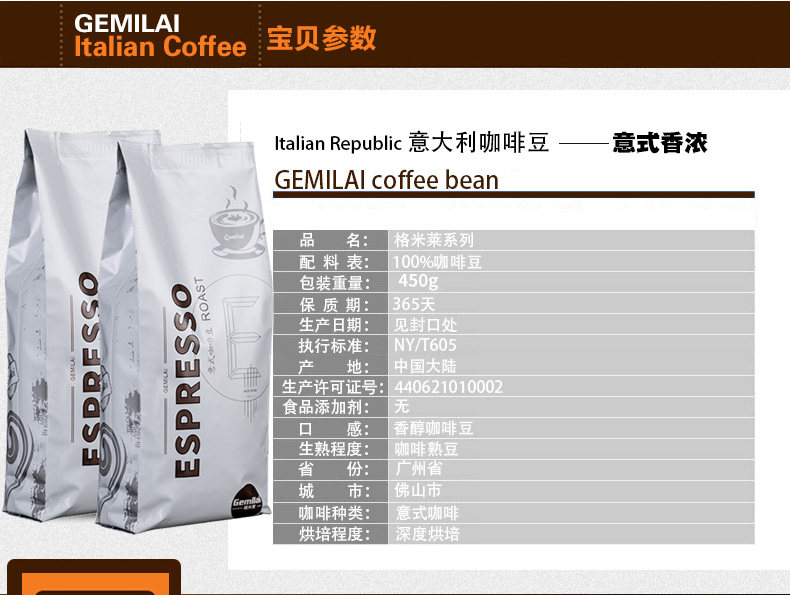Gemilai AAA Italian Coffee Beans Fresh Medium Deep Roasted Coffee Beans Freshly Ground Coffee Powder 450g - Taobao