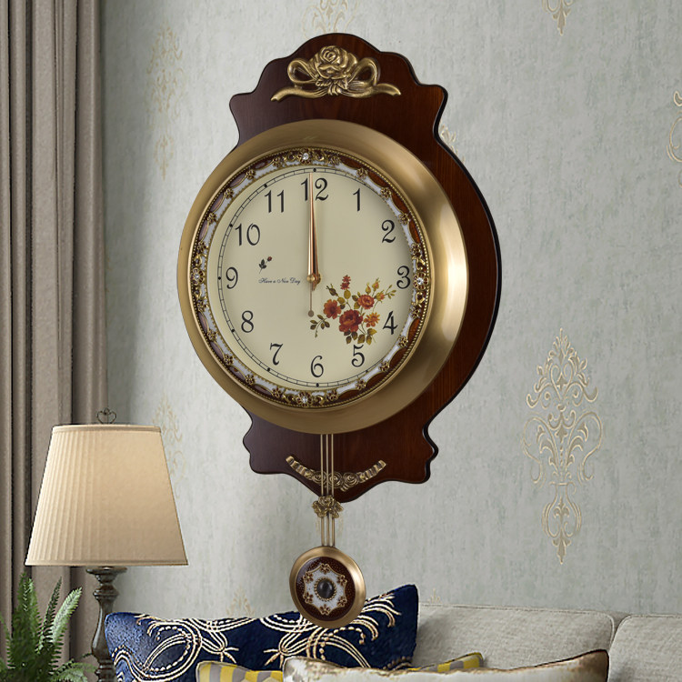 Eurostyle pure copper bell solid wood American living room hanging bell single-sided hanging table bedroom clock muted clock pendulum clock