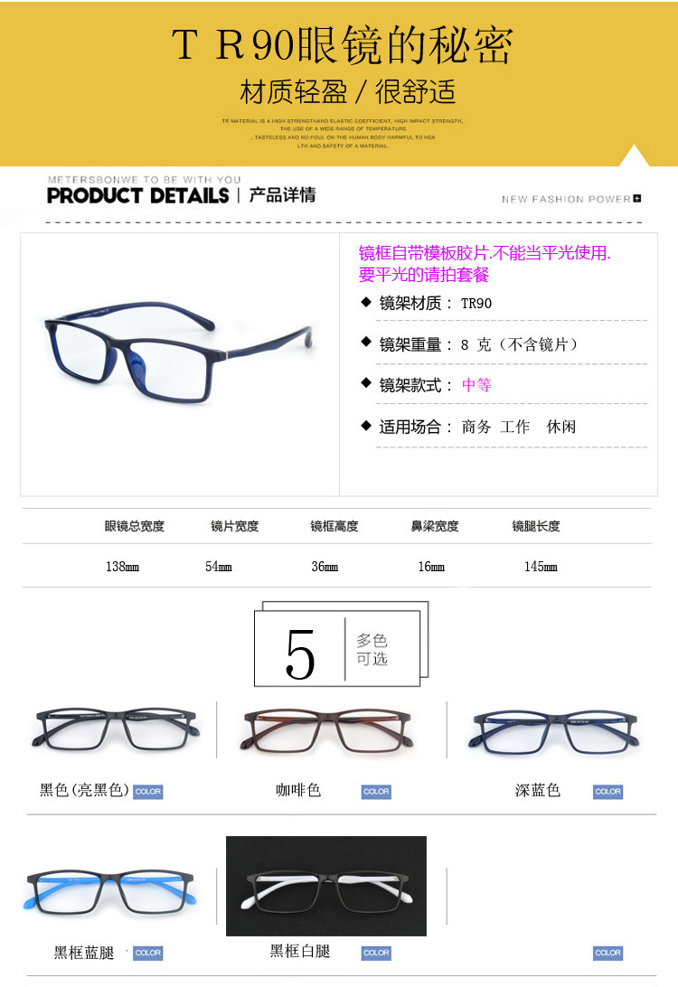 Dark blue black brown black frame white leg black frame blue leg with flat light or myopia lens consultation customer service