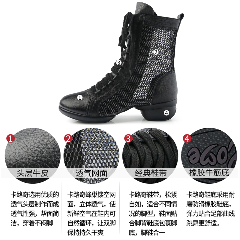 Karuchi dance boots 2021 spring and summer new mesh sailor dance boots mid heel breathable dance shoes square dancer shoes