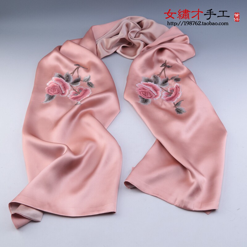 Soda embroidered scarf shawl lady autumn and winter embroidered by hand embroidery 100% silk silk towel long high-end gift
