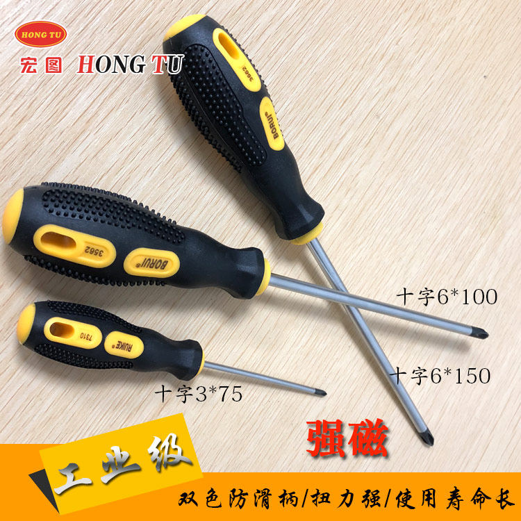 7610 SLOTTED CROSS dual-use screwdriver plastic handle with magnetic screw screwdriver screwdriver 6*75-300MM