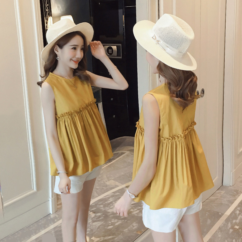 Pregnant women's summer suit Han cotton short pregnant woman T - shirt sleeveless pink coat shorts summer two - piece sets