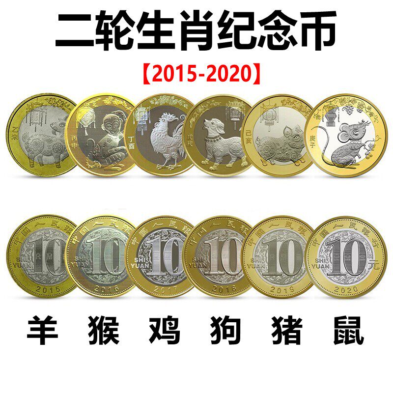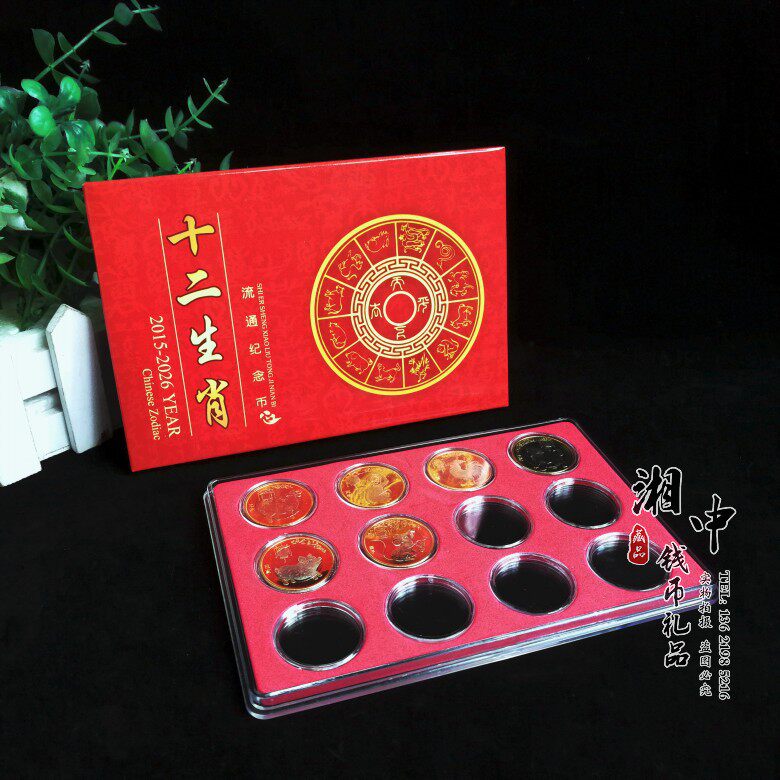 Two-round zodiac commemorative coin set with sheep-monkey cock dog pig rat 6 commemorative coins with a collection box fidelity