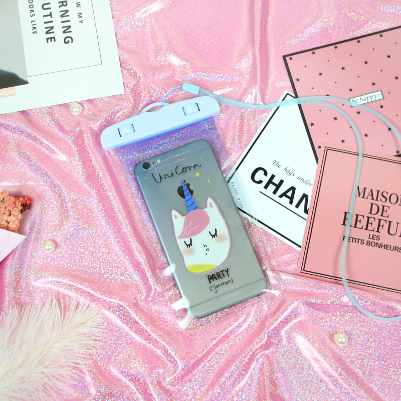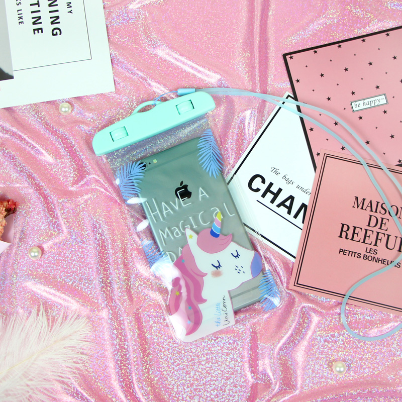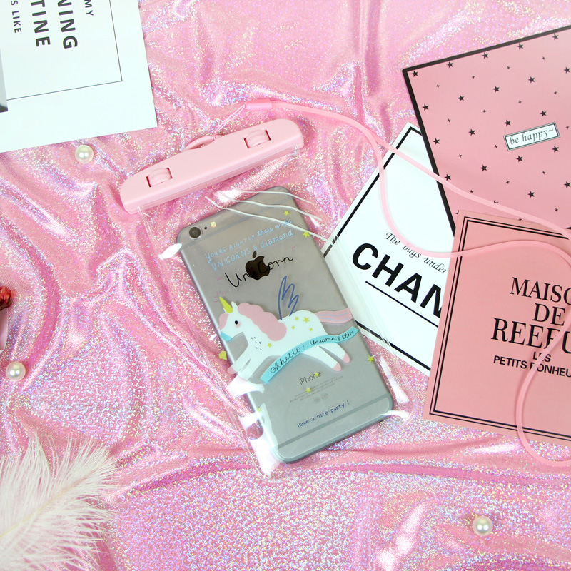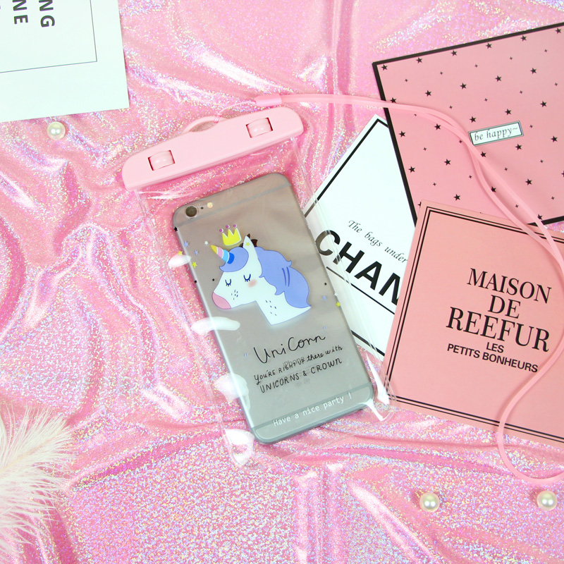 Net red ins cartoon girl mobile phone waterproof bag Japanese fresh summer unicorn lanyard swimming hot spring bag