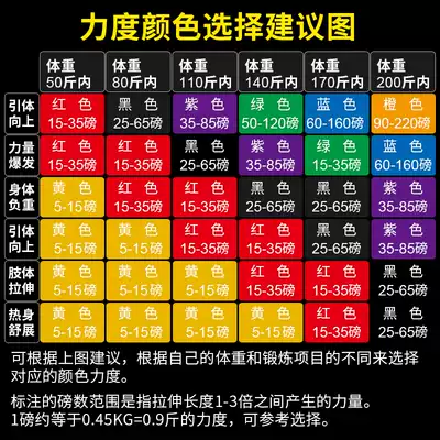 Orange 90-220LB Purple 35-85LB Blue 60-160LB Red 15-35LB Green 50-120LB Yellow 5-15L