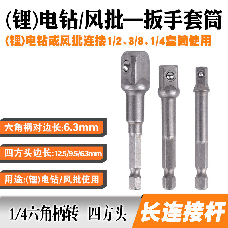 Hexagonal shank transfer 1 2 tetragonal head connecting rod (short) hexagonal shank turning 3 8 tetragonal head connecting rod (short) hexagonal shank turning 1 4 tetragonal head connecting rod (short) hexagonal handle rotating Quartet
