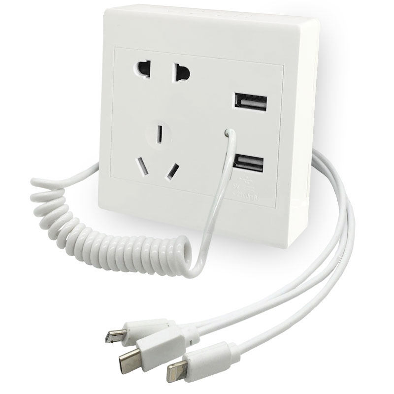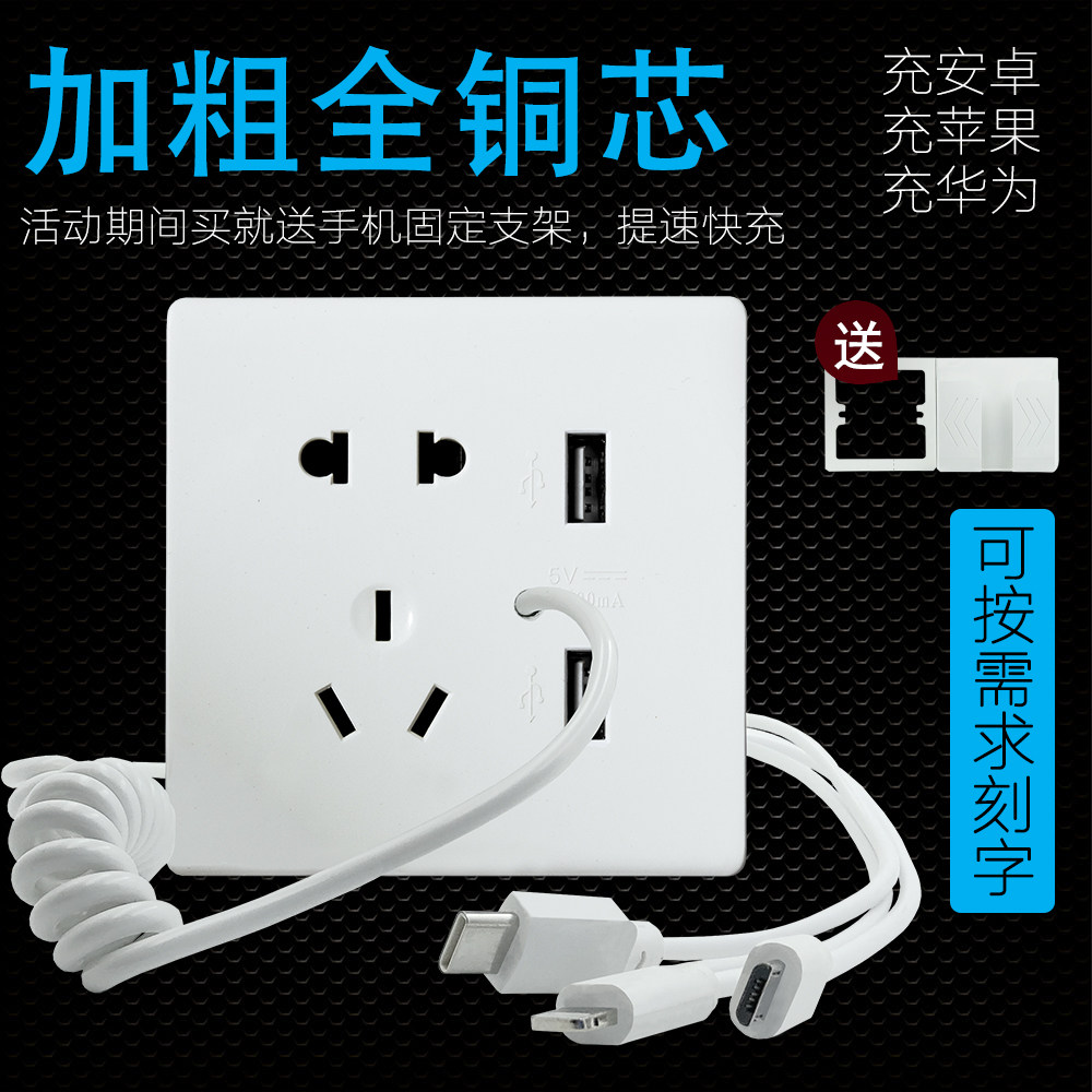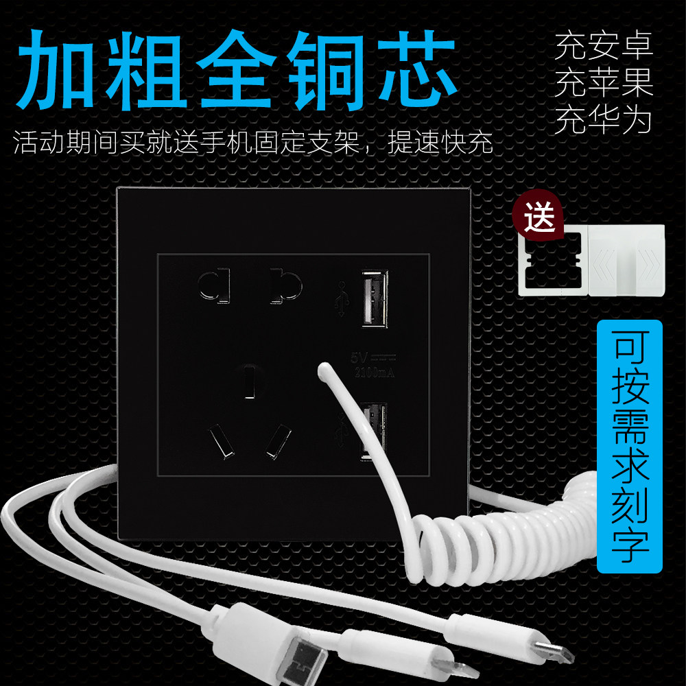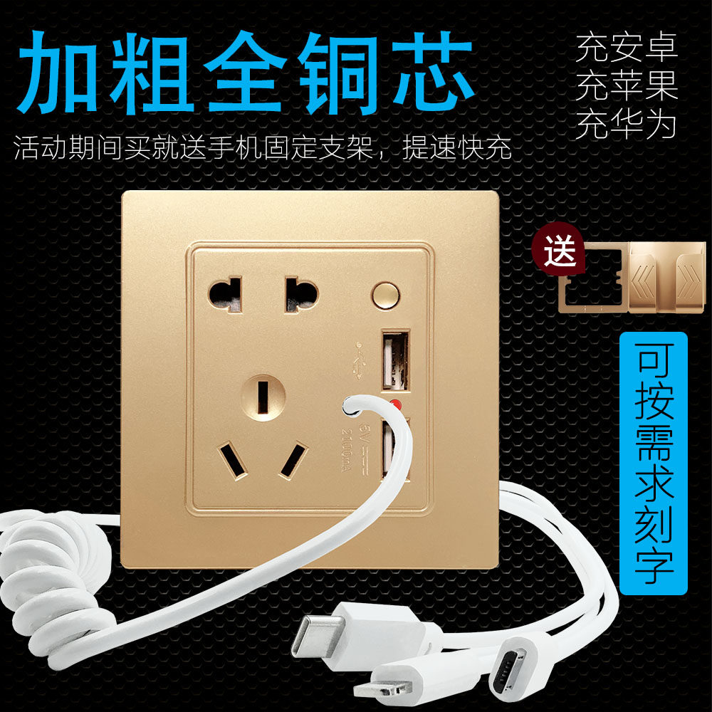 Type 86 with 3-in-1 Data Charging Line Hotel Mobile Phone Gas Station Five-hole Double USB Wall Socket Panel
