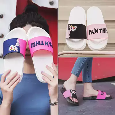 ins Super fire Net Red Leopard slippers female summer cute indoor and outdoor wear cool soft bottom black non-slip pink girl heart