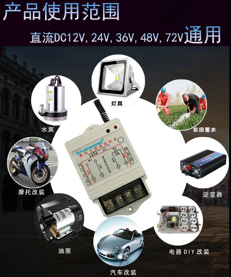 12V24V48V60V 72V universal DC remote control switch water pump oil pump lamp motor wireless remote control switch
