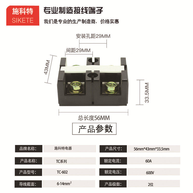 TC-602 wiring terminals connector Large current wiring terminals 60A 2 terminals Terminals Platoon Brass