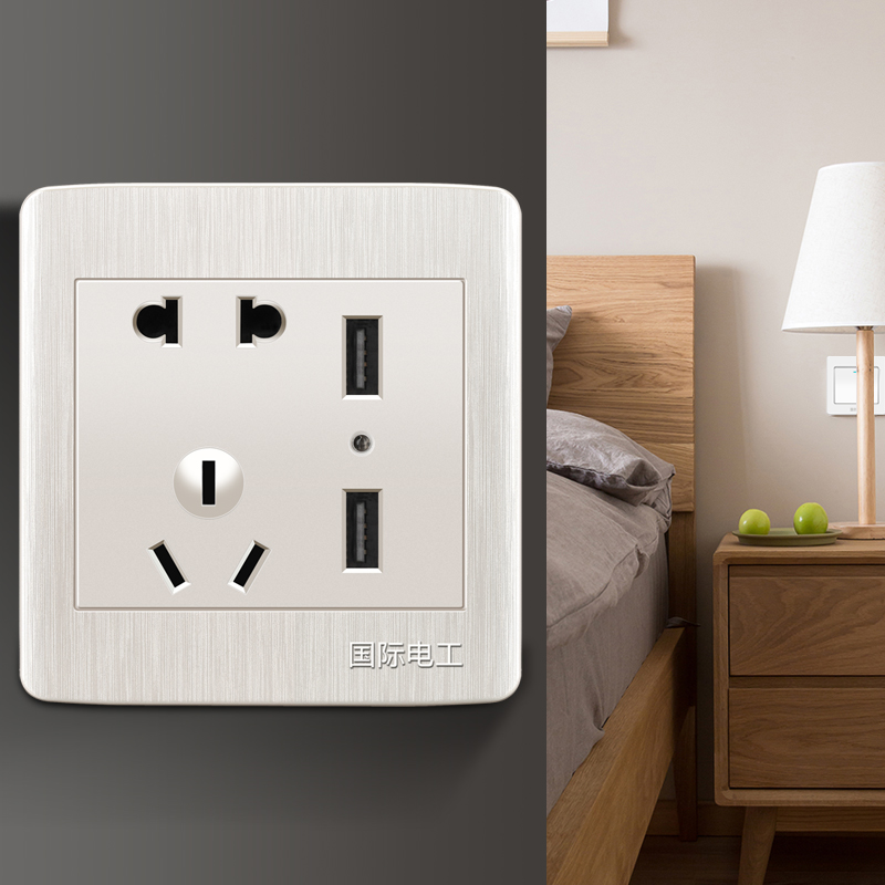 (5 holes USB) International electrician 86 Type of concealed power switch socket panel 23 plug 5-hole usb charge-Taobao