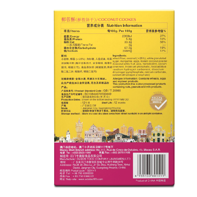 Macau Hand Letteris October First Five Coconut Crisp Casual Pastry Snack Zero Food Wedding Celebration Gift