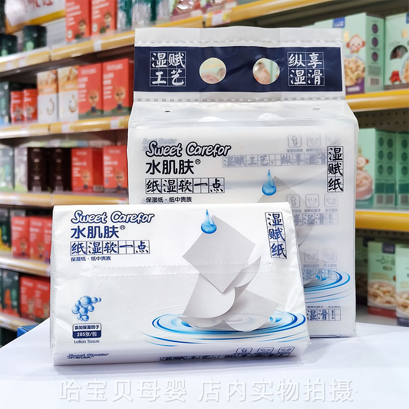 (Pat 3 Fat 4) Water skin wet on paper 285 sheets * 4 packs baby moisturizing paper baby tissue face towels paper drawing-Taobao