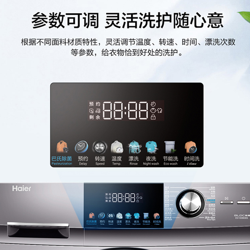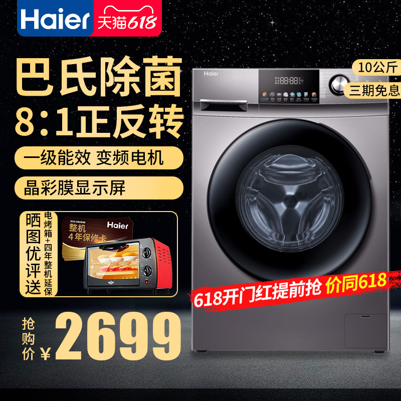 Haier washing machine fully automatic household drum elution integrated frequency conversion sterilization and mite energy saving single washing first-level energy efficiency