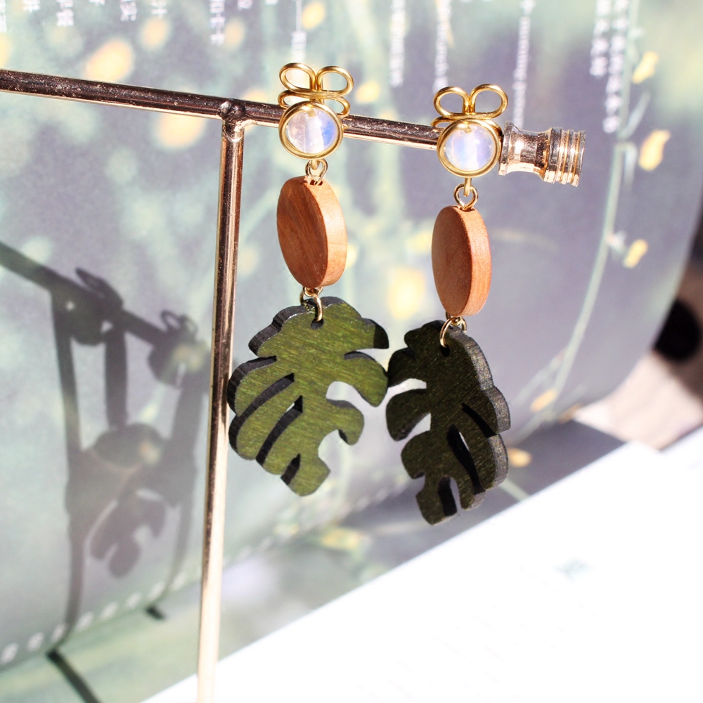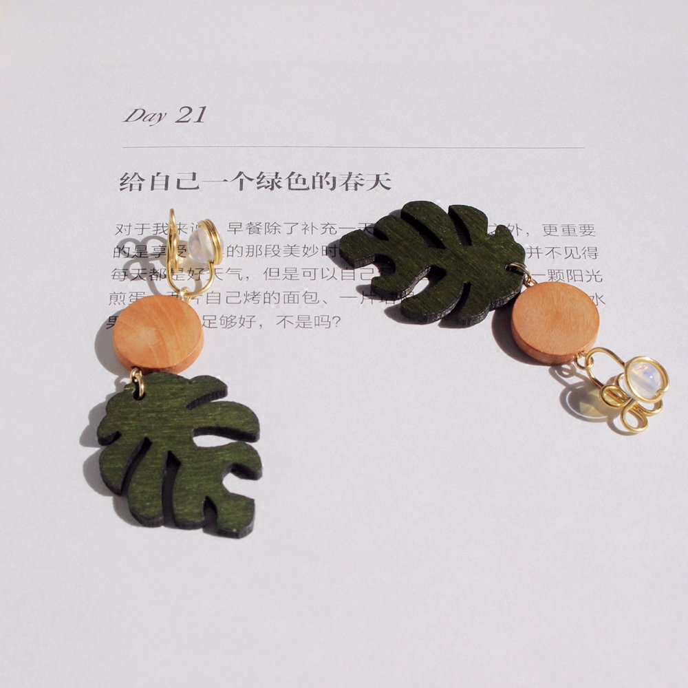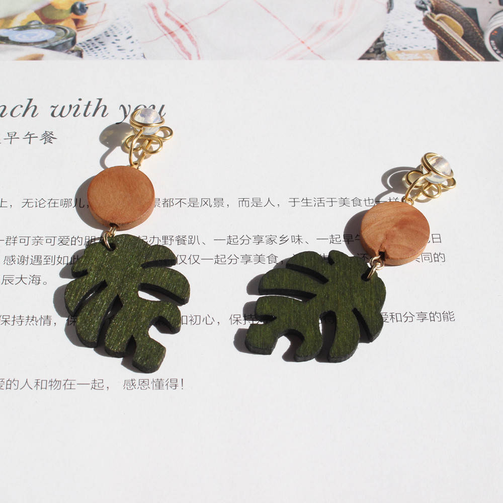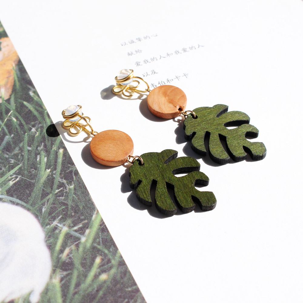 No ear holes painless silicone mosquito coil plate ear clip long version of wood wafer leaf green vintage invisible earring earrings