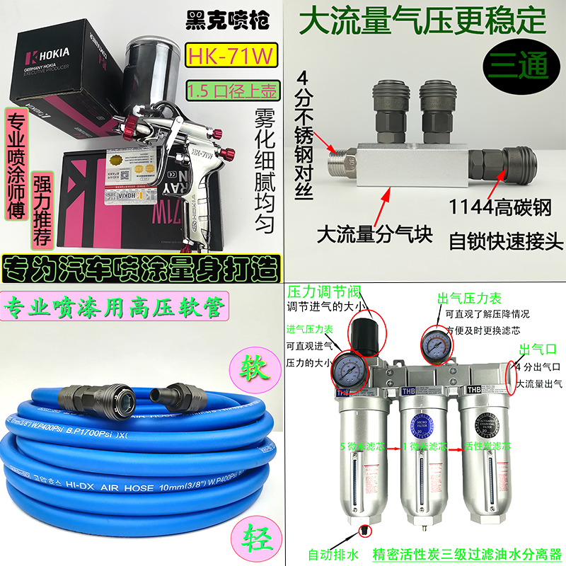 High-end car spray high pressure windpipe antistatic hose 3 knox precision oil-water separator German black spray gun