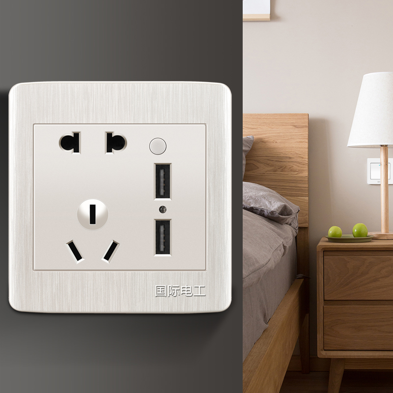 (with switch five holes USB) Type 86 pearly white switch socket panel 23 inserts 5 holes with double usb panel-Taobao