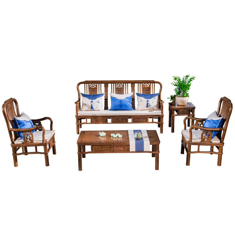 Lingfu mahogany sofa solid wood furniture chicken wing wood sofa combination living room small apartment antique complete Ming style sofa