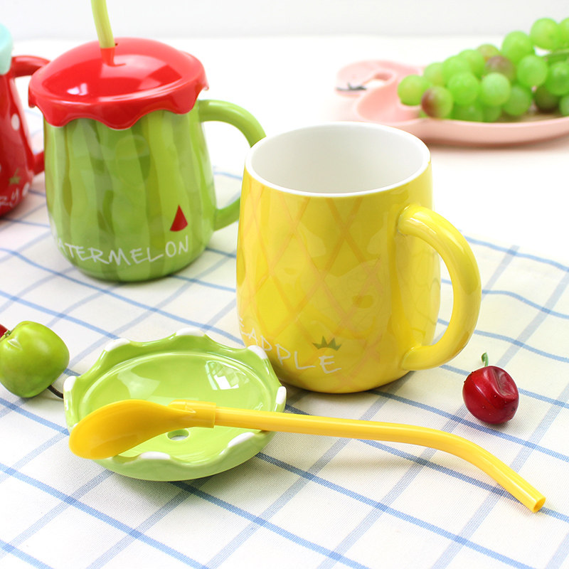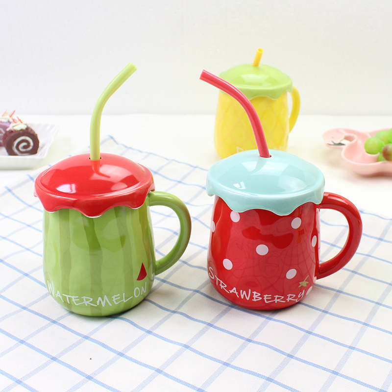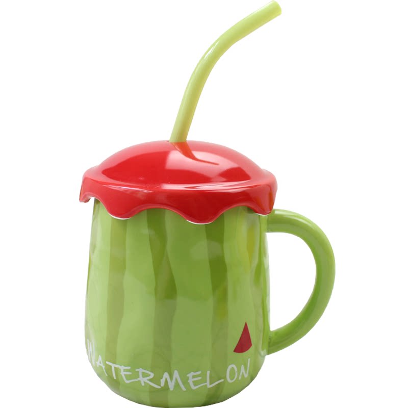 Love Beauty Whirlpool Summer Emulation Watermelon Cup Fruit Ceramic Mark Cup Hand-painted With Lid Delivery Straw Water Cup 460ml