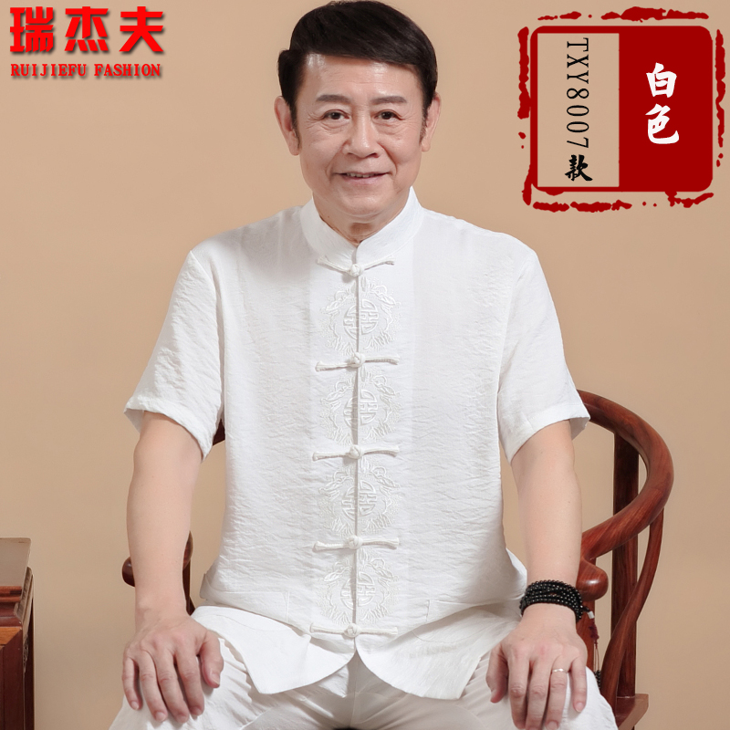 Chinese style Tang suit men's short-sleeved linen suit summer middle-aged and elderly cotton and linen lay clothes Chinese Hanfu dad outfit