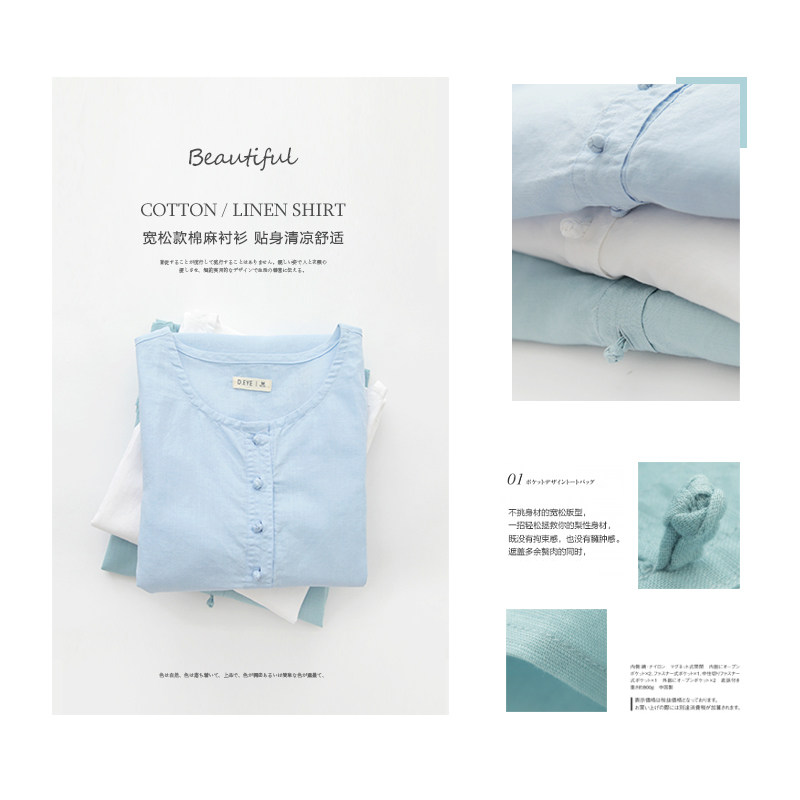 Special price clear cabin cotton linen shirt female summer art retro blouse pure colour set linen in long version loose shirt