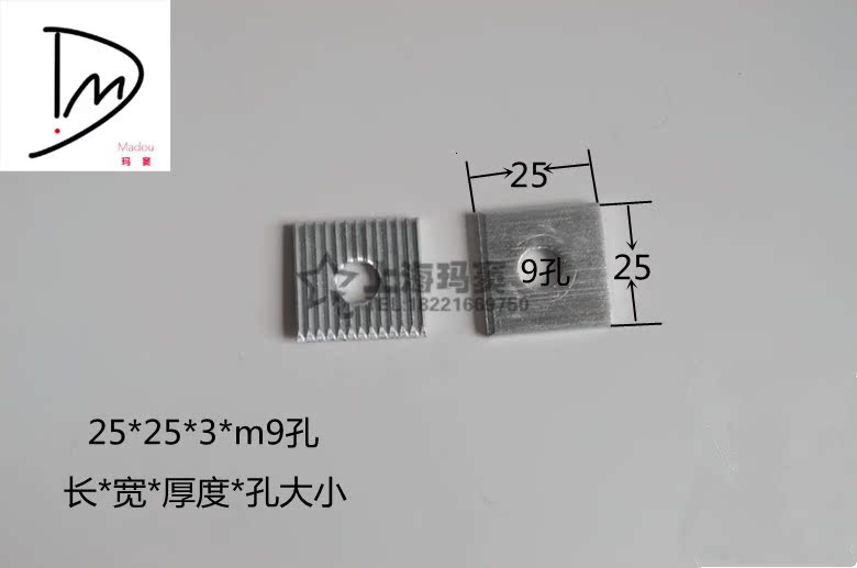 Aluminum Alloy Four Square Flat Spacer SE Aluminum Pendant Special Formula Spacer 25 * 25 * 2*m7 hole m9 hole