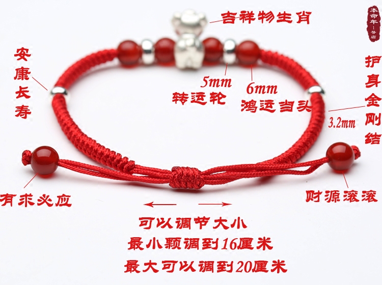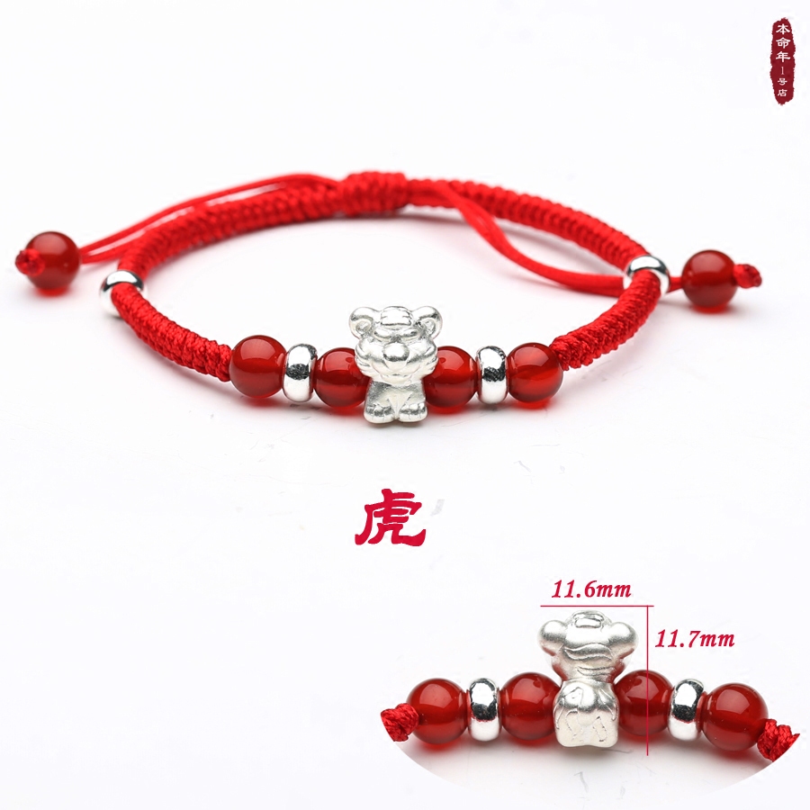 The No. 1 shop of the natal year 999 fine silver 3D hard silver red rope bracelet Chinese zodiac rat Lucky Tai Sui transfer