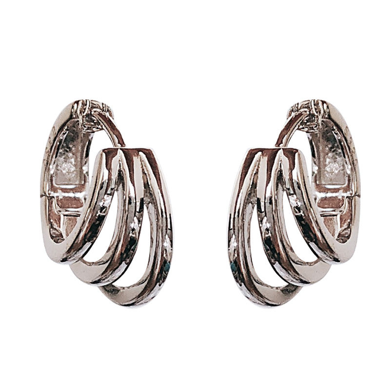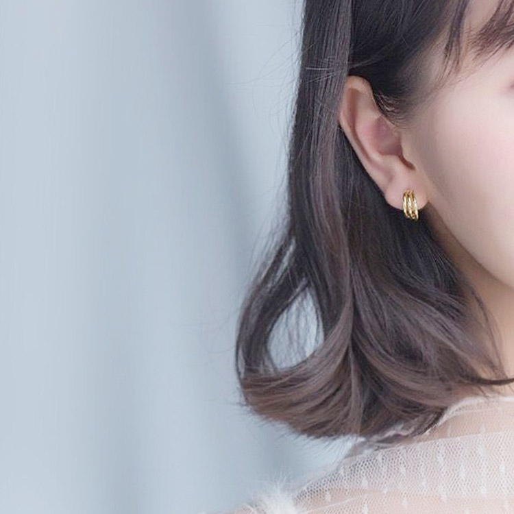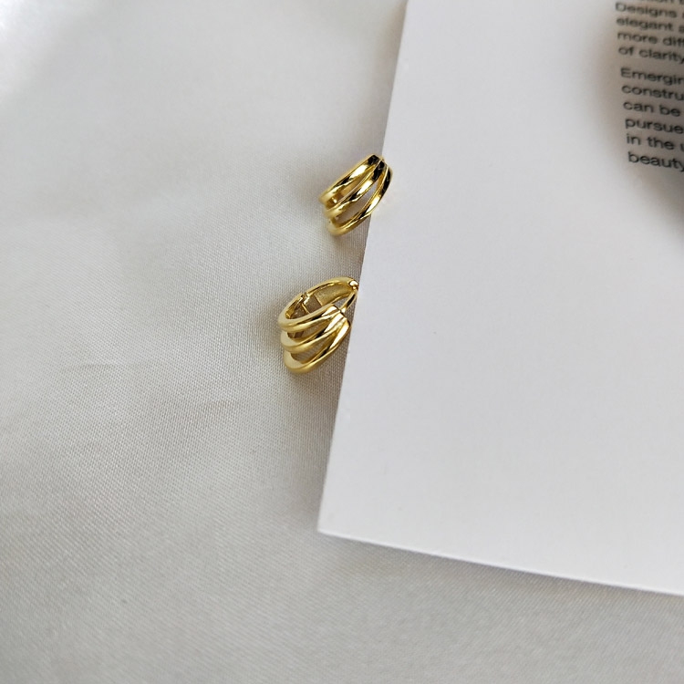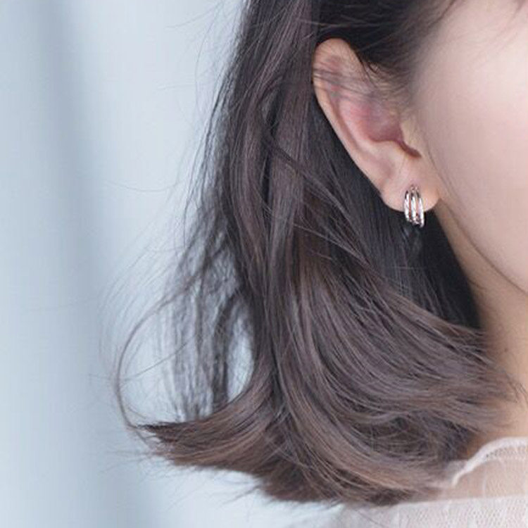 Three-layer surround personalized ear buckle 925 sterling silver simple earrings short temperament earrings women gold small earrings