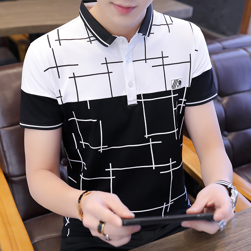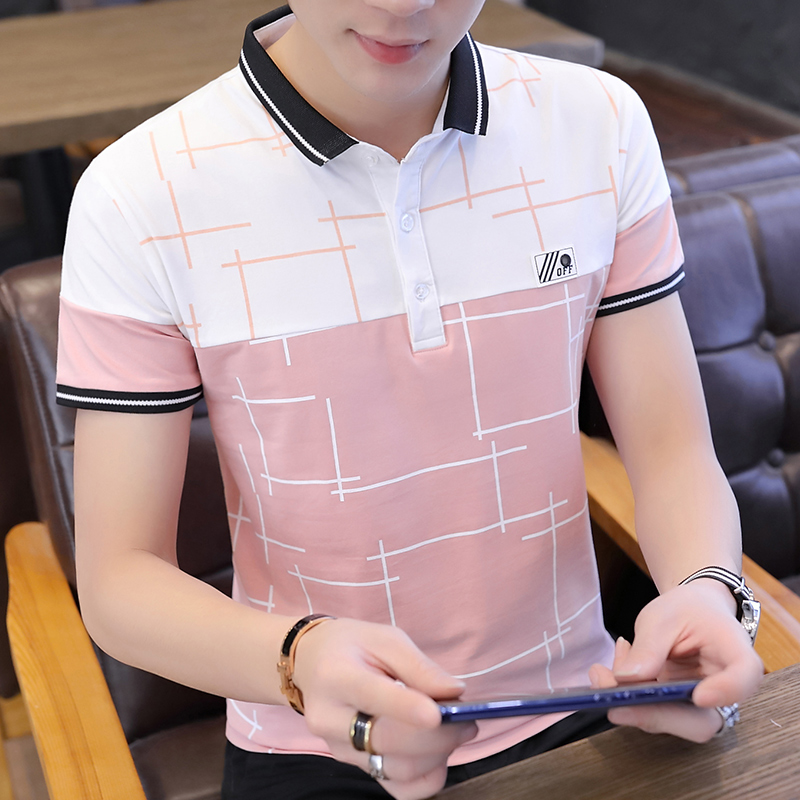 Short-sleeved T-shirt men's Korean version of the trend polo shirt 2020 summer new men's striped clothes half-sleeve T-shirt ins