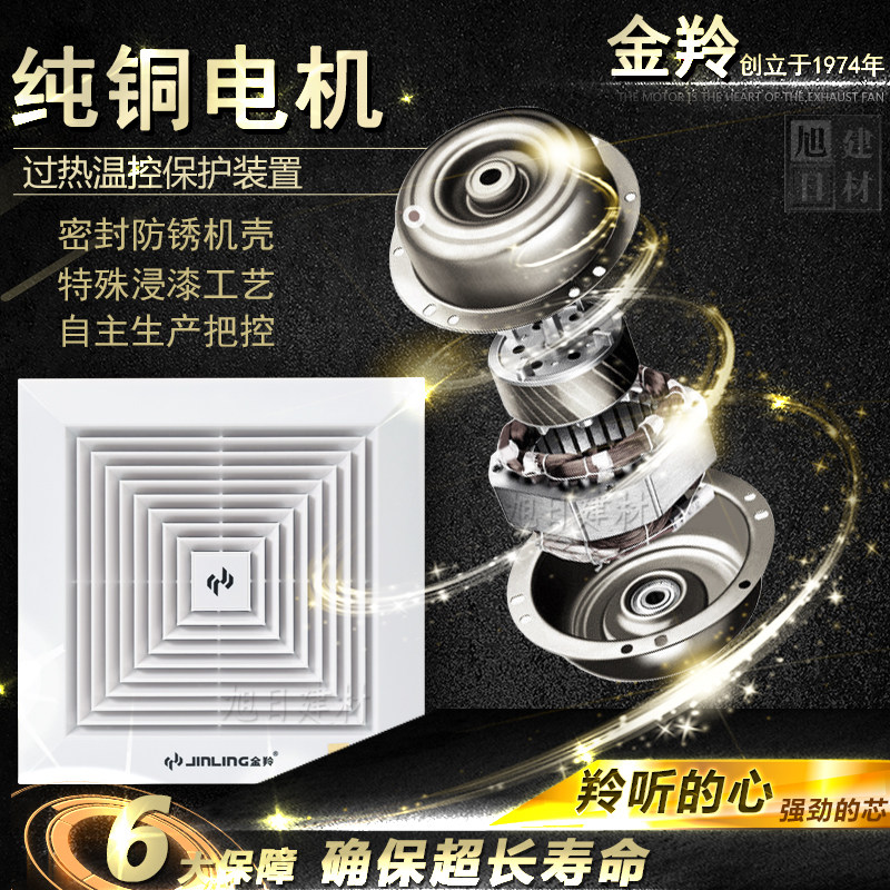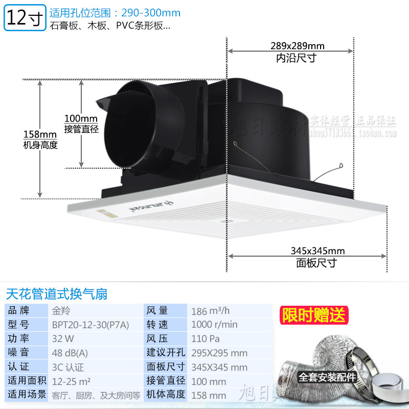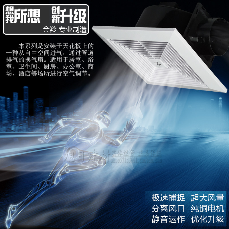 Jinling 12 inch ceiling pipe ceiling exhaust fan kitchen powerful high-power household exhaust ventilation exhaust fan