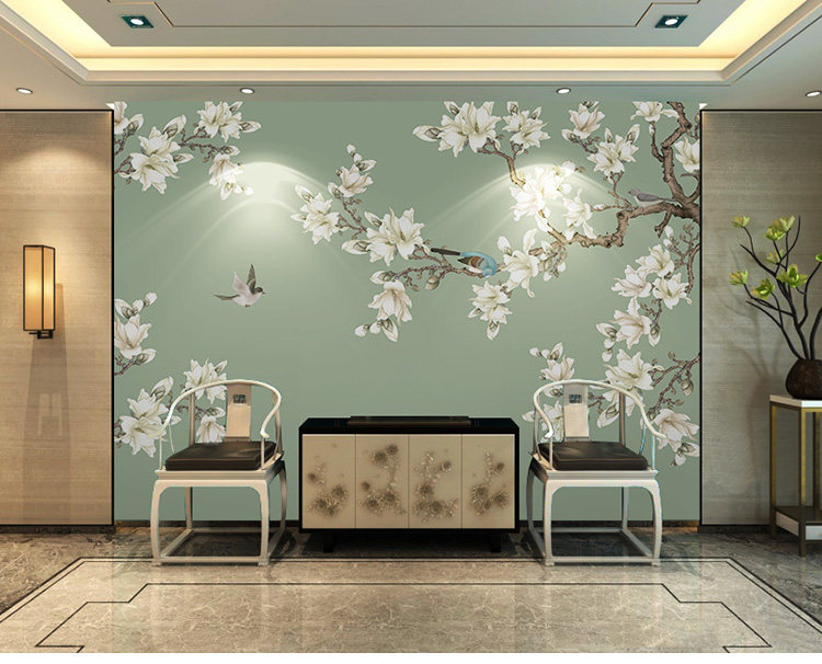 New Chinese TV background wall paper flowers and birds painting Bedroom living room 3d seamless wall cloth film and television wallpaper mural