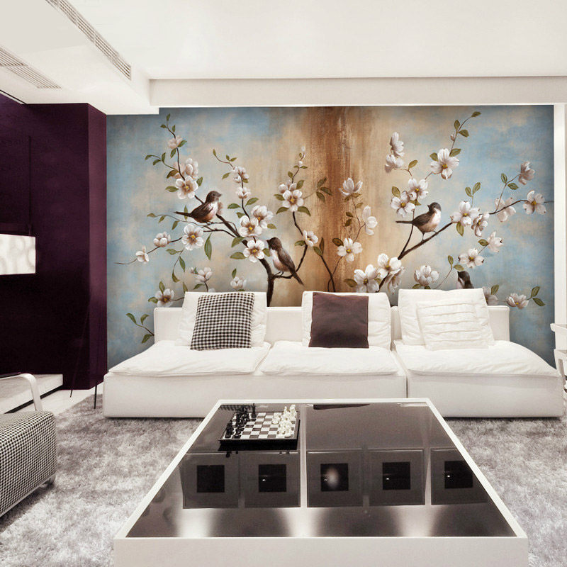 Modern Chinese wallpaper living room TV background wall painting magnolia flower bird wallpaper custom mural seamless wall cloth