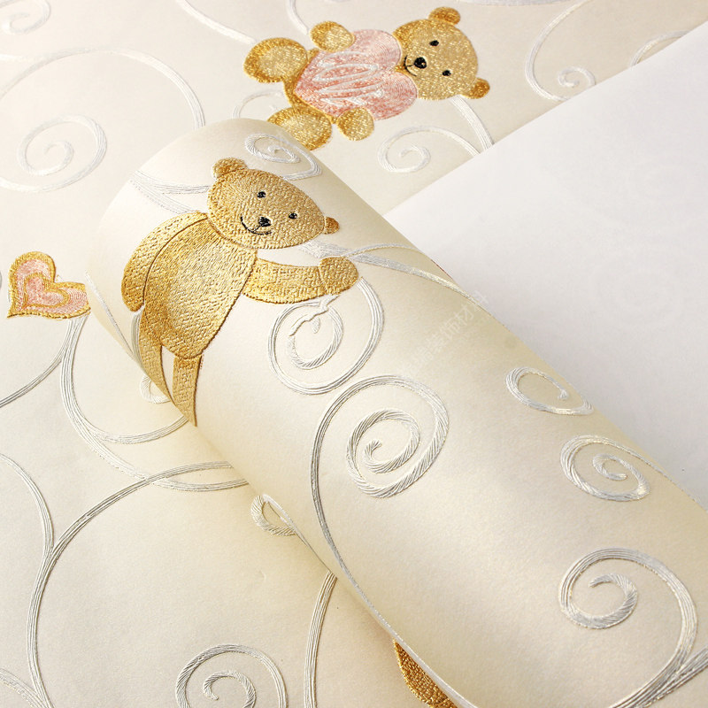 3D precision relief high-grade wallpaper bedroom non-woven wallpaper bear boy room background wall stereo