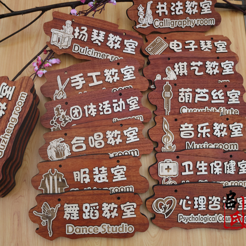 Custom kindergarten class card wooden training center classroom card office house number school logo sign creative