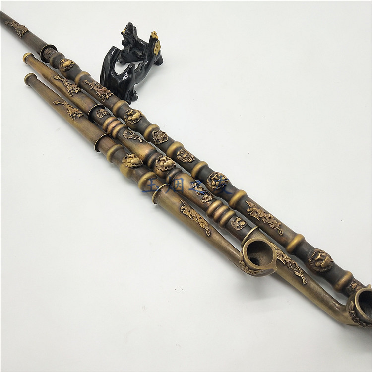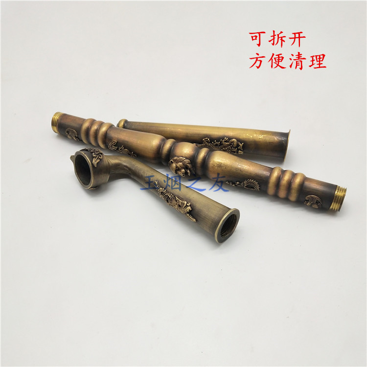 Traditional old dry smoke bag brass bag pot dragon wind inlaid cigarette pot cigarette pot for old men tobacco