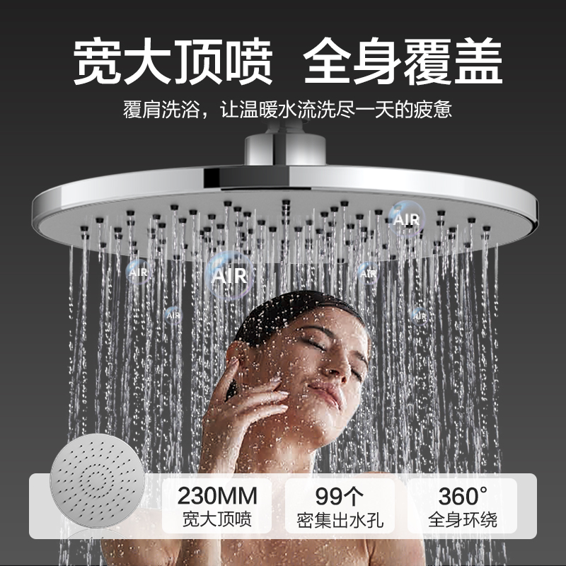 (main picture section) B paragraph (four function round shower head) pressurized large water A section (three-function round shower head) Three-gear handheld C (three-function round shower head) back spewing out water