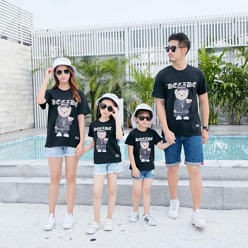 Pro-Child Fashion Summer Fashion 2018 New wave Mother and son Fashion whole family clothes family of three pins and Korean version T-shirt Mother women Fashion Summer