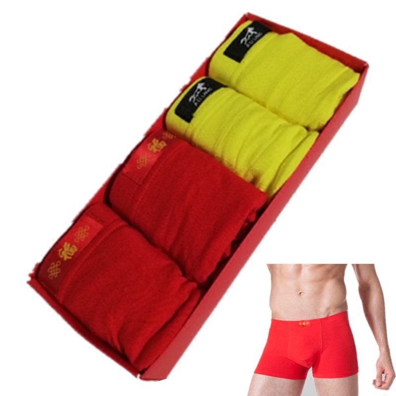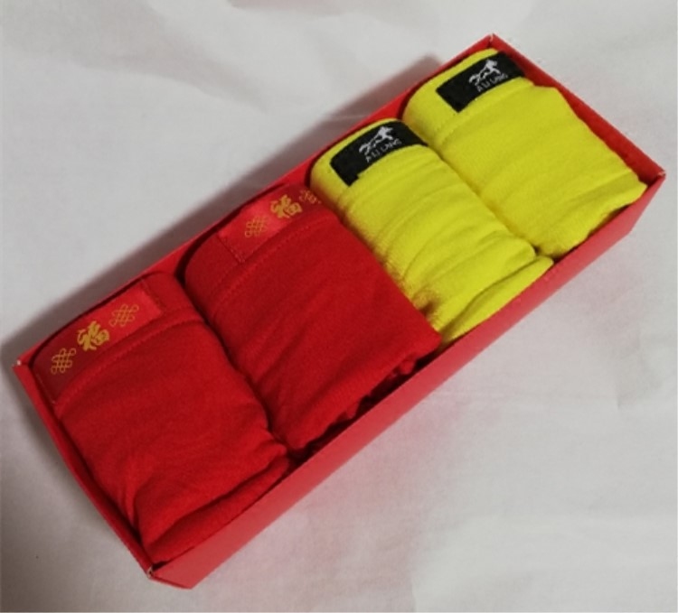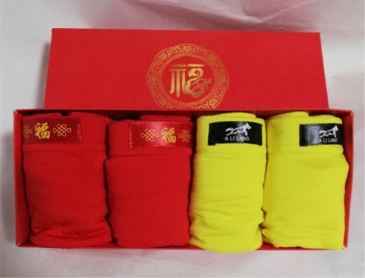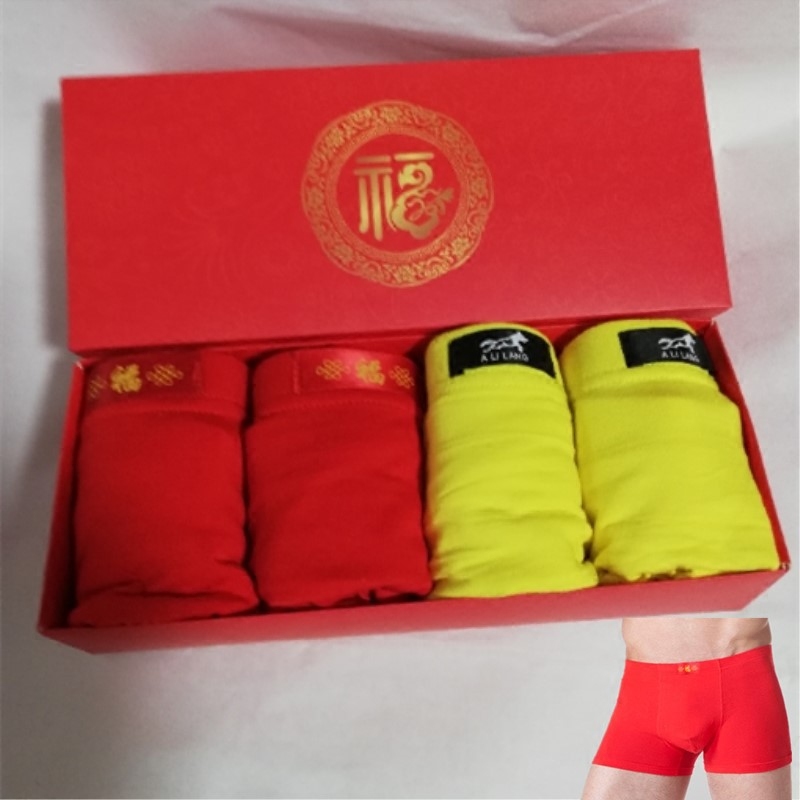520 Father's Day Underpants courtesy box dress Men's flat corner pants head large size for the year Red groom marries yellow summer thin