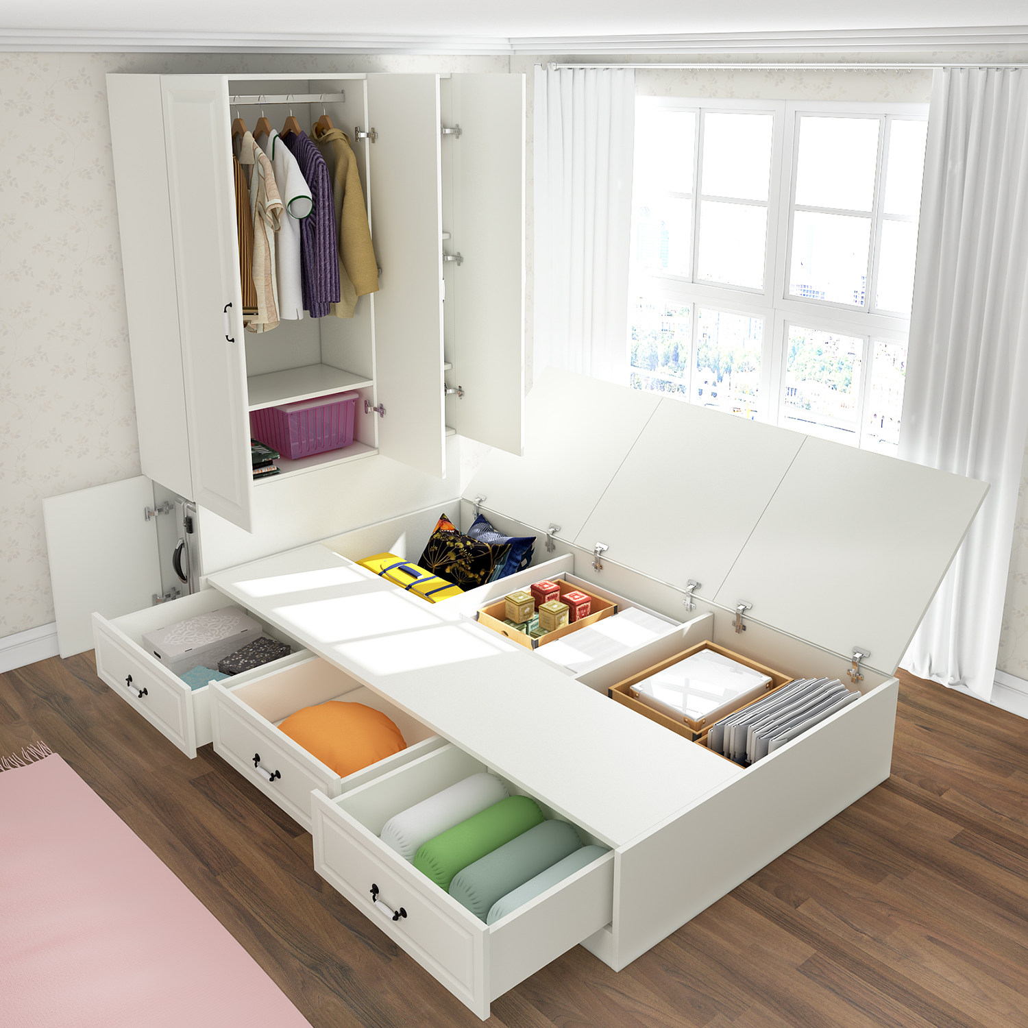 ins Tatami modern simple bookcase Wardrobe one-piece bed Children's storage storage bed Small apartment customization
