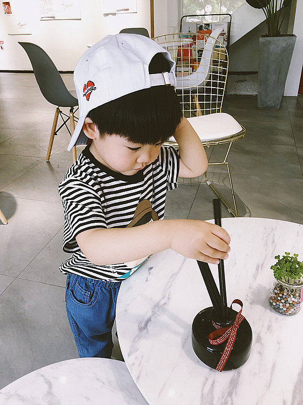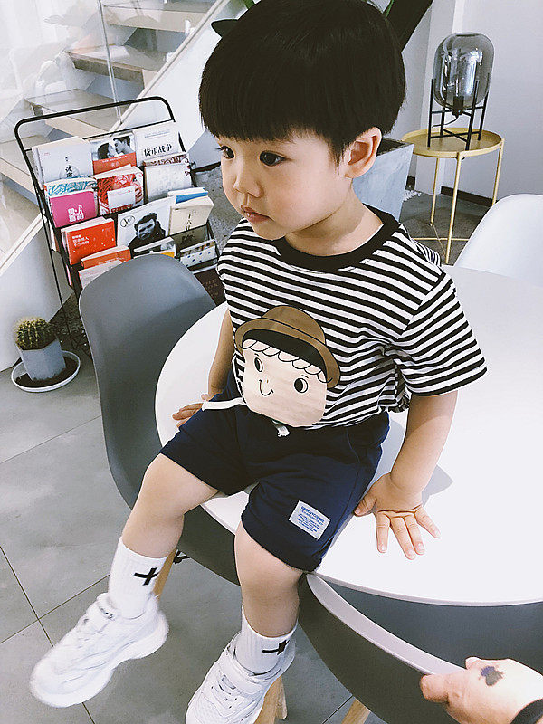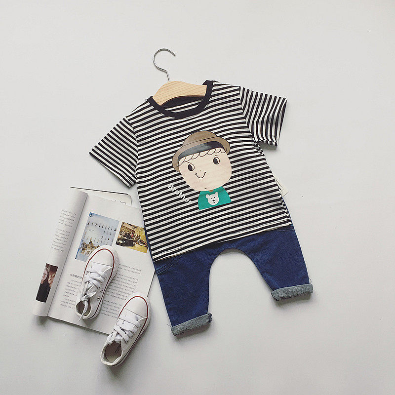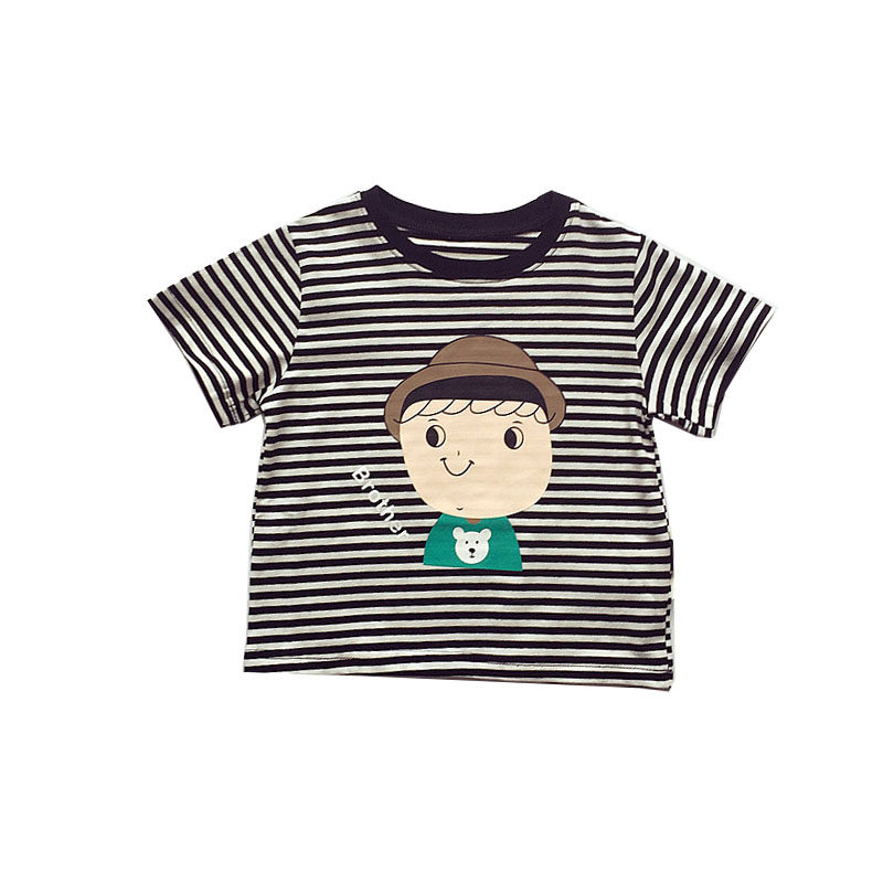 Summer new products boys and girls, children, children, striped cartoon printing, striped short-sleeved T-shirts, tops, bottoming shirts
