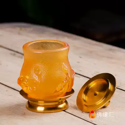 Ancient glass lotus water supply cup for Buddha cup Household Buddha hall Buddha front Guanyin holy water cup Copper alloy with lid